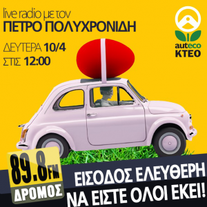 Ο Δρομος 89,8 και ο Πετρος Πολυχρονίδης υπόσχονται ένα δίωρο γεμάτο μουσική και εκπλήξεις! Την Μ. Δευτέρα, 10 Απριλίου στις 12 το μεσημέρι, τα ΚΤΕΟ της auteco σας προσκαλούν στον σταθμό της Λεωφόρου Αθηνών 107 στον Βοτανικό, σε ένα μοναδικό […]