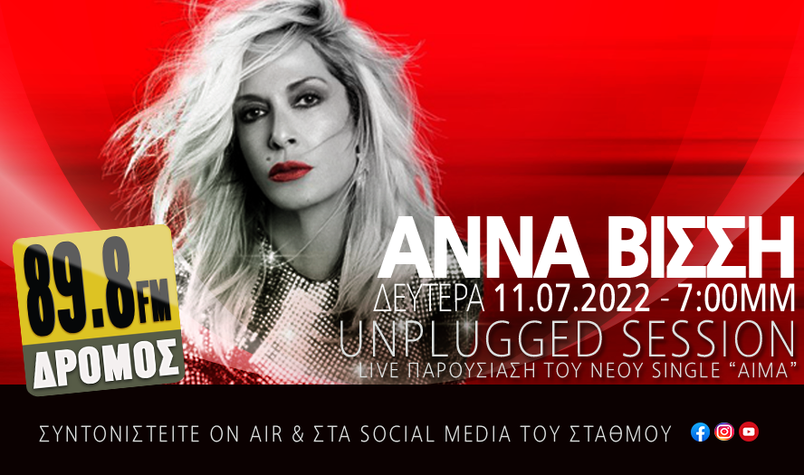 Η πολυαγαπημένη μας τραγουδίστρια Άννα Βίσση, έρχεται στον ΔΡΟΜΟ 89,8 για ένα μοναδικό live unplugged session την Δευτέρα 11 Ιουλίου στις 19:00 το απόγευμα!
