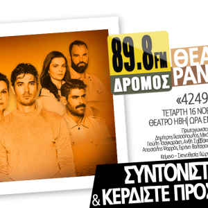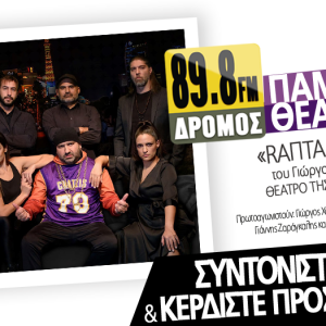 O ΔΡΟΜΟΣ 89,8 σας δίνει την ευκαιρία να απολαύσετε τη μουσικοθεατρική παράσταση «RΑΠΤΑΛΙΚΟ» του Γιώργου Χατζή στο Θέατρο της Ημέρας. Διάσημος μουσικοθεατρικός παραγωγός αναζητά νέα ταλέντα για το show που πρόκειται να ανεβάσει. Γνωστός για τις ιδιοτροπίες του και τους σκληρούς του τρόπους, περνά […]