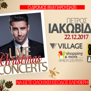 Ο ΔΡΟΜΟΣ 89,8 και το VILLAGE shopping & more… σας προσκαλούν λίγο πριν τα Χριστούγεννα σε μια μοναδική συναυλία με τον Πέτρο Ιακωβίδη! Την Παρασκευή 22 Δεκεμβρίου, ελάτε να διασκεδάσουμε μαζί, στο τρίτο LIVE CHRISTMAS CONCERT στο VILLAGE shopping & […]
