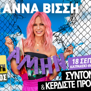 Η Άννα Βίσση ολοκληρώνει την καλοκαιρινή της περιοδεία με μία μοναδική συναυλία, το Σάββατο 18 Σεπτεμβρίου στο Κατράκειο Θέατρο Νίκαιας! Η μοναδική ερμηνεύτρια ενώνεται ξανά με την «χρυσή» 12μελή μπάντα της και παρουσιάζει στο κοινό ένα -σχεδόν τρίωρο-ανατρεπτικό, μουσικό ταξίδι. Θρυλικές επιτυχίες, […]