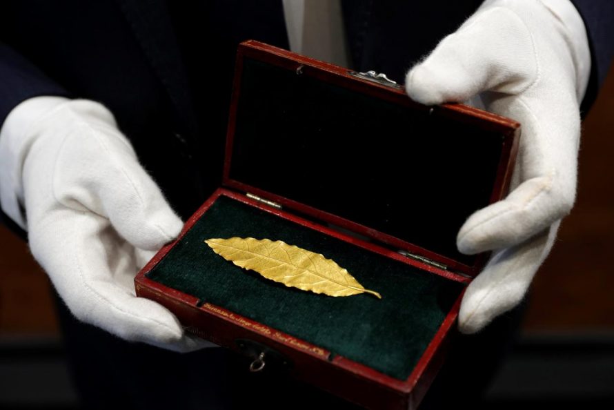 Ένα χρυσό δάφνινο φύλλο που προοριζόταν για την κορώνα με την οποία έγινε η στέψη του Ναπολέοντα, το 1804, πωλήθηκε σήμερα έναντι 625.000 ευρώ, σε δημοπρασία που οργάνωσε ο οίκος Osenat στο Φοντενεμπλό, κοντά στο Παρίσι.