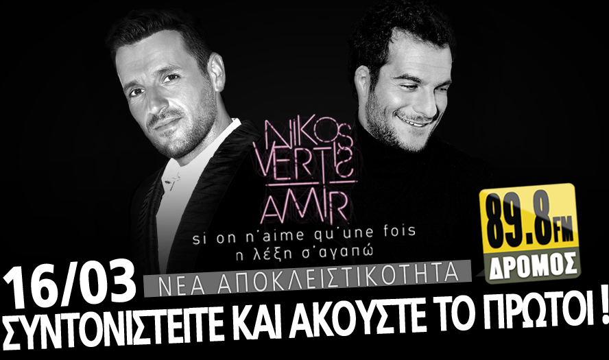 Ο κορυφαίος Έλληνας ερμηνευτής της γενιάς του, ο Νίκος Βέρτης, ενώνει τις «δυνάμεις» του με τον διεθνούς φήμης τραγουδιστή Amir και παρουσιάζουν το νέο τους single με τίτλο «Η Λέξη Σ’ Αγαπώ / Si On N’Aime Qu’Une Fois» αποκλειστικά στον ΔΡΟΜΟ 89,8!