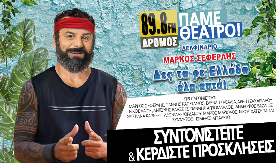 Ο Μάρκος Σεφερλής παραμένει για 17η συνεχή χρονιά στο θέατρο «Δελφινάριο» και ως μοναδικός «survivor» της επιθεώρησης και παρουσιάζει την ολοκαίνουργια παράστασή του με τίτλο «Δες τα ρε Ελλάδα όλα αυτά», με χορηγό επικοινωνίας, τον ΔΡΟΜΟ 89,8!
