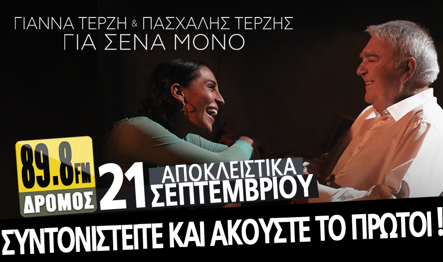 Η ταλαντούχα Γιάννα Τερζή και ο νούμερο ένα λαϊκός ερμηνευτής Πασχάλης Τερζής, παρουσιάζουν το νέο τους τραγούδι «Για σένα μόνο» αποκλειστικά στον ΔΡΟΜΟ 89,8!