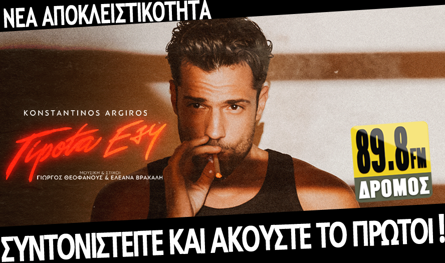 Ο Κωνσταντίνος Αργυρός υποδέχεται το νέο έτος με ακόμα μία επιτυχία, το νέο του single «Τίποτα Εσύ» και το παρουσιαζει αποκλειστικά στον ΔΡΟΜΟ 89,8!