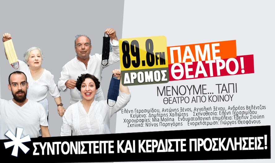 Ο ΔΡΟΜΟΣ 89,8 παρουσιάζει την ξεκαρδιστική επιθεώρηση του Δημήτρη Χαλιώτη «Μένουμε… ταπί» στην δροσερή αυλή του «Από Κοινού» Θέατρο. Η Ελένη Γερασιμίδου, ο Αντώνης Ξένος, η Αγγελική Ξένου και ο Ανδρέας Βελέντζας, πρωταγωνιστούν σε μια πολιτικοκοινωνική επιθεώρηση με άφθονο γέλιο και αιχμηρή διάθεση για όσα παράλογα και τραγελαφικά ζούμε.