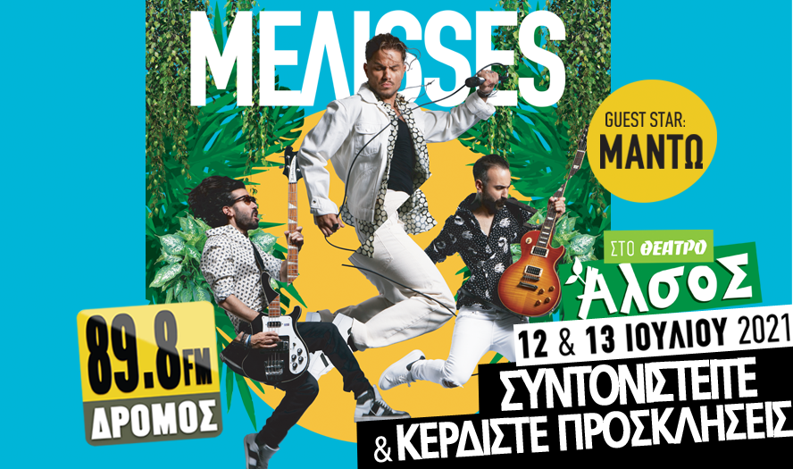 στο Θέατρο Άλσος για δύο μοναδικές παραστάσεις, την Δευτέρα 12 & την Τρίτη 13 Ιουνίου. Οι ΜΕΛΙSSES έχοντας στο ενεργητικό τους περισσότερα από 1200 live στα 12 χρόνια τους, αποδεικνύουν ότι το δυνατό τους χαρακτηριστικό παραμένει η επαφή τους με τον κόσμο. Το αγαπημένο συγκρότημα έρχεται στο Θέατρο Άλσος και παρουσιάζει ένα πρόγραμμα γεμάτο από τις επιτυχίες του όπως «Το Κύμα», το «Έλεγες», το «Γιατί», το «Όλα Μοιάζουν Καλοκαίρι», το «Δεν Έχω Ιδέα», το «Είμαι Αλλού», το «Κρυφτό», το «Ένα Λεπτό» αλλά και μοναδικές διασκευές που όλοι έχουμε αγαπήσει.