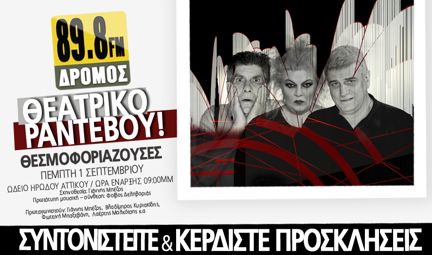 Στείλτε ΤΩΡΑ sms στο 54301 γράφοντας ΔΡΟΜΟΣ κενό το ΟΝΟΜΑΤΕΠΩΝΥΜΟ σας και τη λέξη ΡΑΝΤΕΒΟΥ για να διεκδικήσετε διπλές προσκλήσεις και να απολαύσετε τη διαχρονική κωμωδία του Αριστοφάνη, σε σκηνοθεσία του Γιάννη Μπέζου και μουσική του Φοίβου Δεληβοριά, σε ένα μοναδικό θεατρικό ραντεβού με τον ΔΡΟΜΟ 89,8!