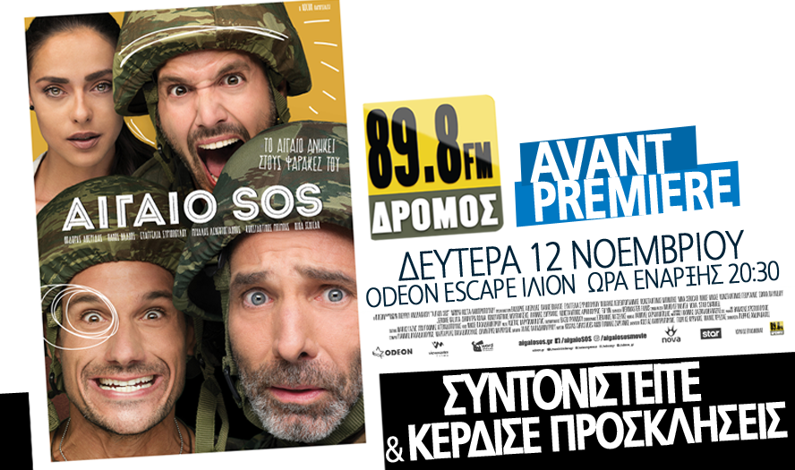 Τη Δευτέρα 12 Νοεμβρίου στις 8:30 το απόγευμα στον κινηματογράφο ODEON ESCAPE στο Ίλιον αποκλειστικά για τους ακροατές του ΔΡΟΜΟΥ 89,8.