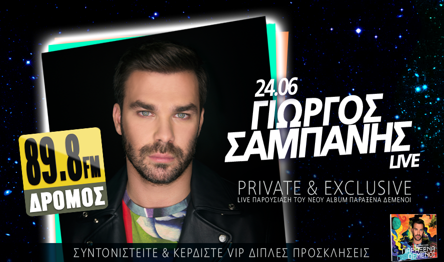 O ΔΡΟΜΟΣ 89,8 σου δίνει την ευκαιρία να απολαύσεις τον Γιώργο Σαμπάνη Private & Exclusive στην παρουσίαση του album «Παράξενα Δεμένοι».