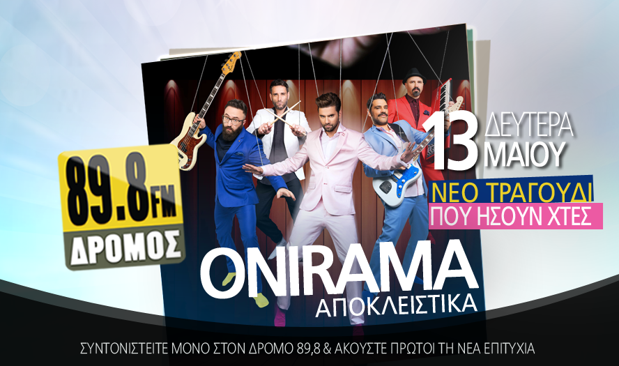 Από τη Δευτέρα 13 Μαΐου συντονιστείτε για να ακούσετε πρώτοι και αποκλειστικά το νέο single των ONIRAMA με τίτλο «Που Ήσουν Χτες», μόνο στο ΔΡΟΜΟ 89,8!