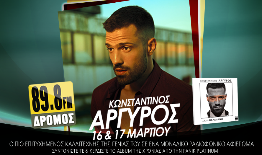 Το Σάββατο 16 και την Κυριακή 17 Μαρτίου συντονιστείτε στο ΔΡΟΜΟ 89,8 για να απολαύσετε τον Κωνσταντίνο Αργυρό στην παρουσίαση του album της χρονιάς! «Το Κάτι Παραπάνω», με 14 τραγούδια που φέρουν την υπογραφή επιτυχημένων δημιουργών, έφτασε στο no1 του iTunes chart μέσα σε λίγες ώρες από την κυκλοφορία του καθώς και στο no1 στις φυσικές πωλήσεις δίσκων, ενώ έχει γίνει πλατινένιο!