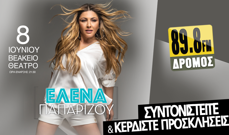Ο ΔΡΟΜΟΣ 89,8 φέρνει κοντά σας την Έλενα Παπαρίζου! Η πολυαγαπημένη τραγουδίστρια έρχεται για μία μοναδική συναυλία την Τετάρτη 8 Ιουνίου 2022, στο Βεάκειο Θέατρο Πειραιά!