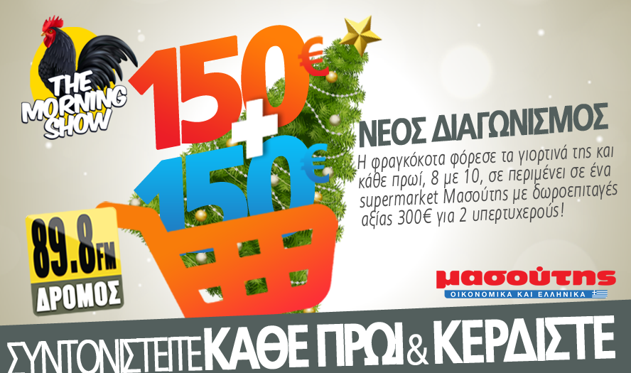 Κάθε πρωί, 8 με 10, σε περιμένει και σε ένα διαφορετικό supermarket Μασούτης με δωροεπιταγές αξίας 150 ευρώ για 2 υπερτυχερούς!