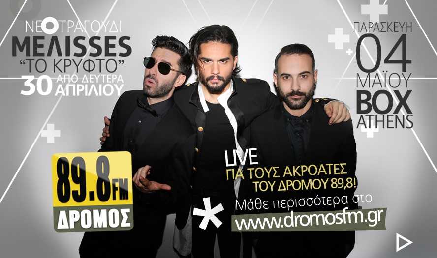 Μείνετε συντονισμένοι στο ΔΡΟΜΟ 89,8 για να ακούσετε πρώτοι και αποκλειστικά το νέο τραγούδι από τις ΜΕΛΙSSES, αλλά και για να κερδίσετε διπλές προσκλήσεις γα να το απολαύσετε live σε μια μοναδική βραδιά την Παρασκευή 4 Μαΐου, στο BOX ATHENS με τις ΜΕΛΙSSES ΚΑΙ ΤΟ ΔΡΟΜΟ 89,8!