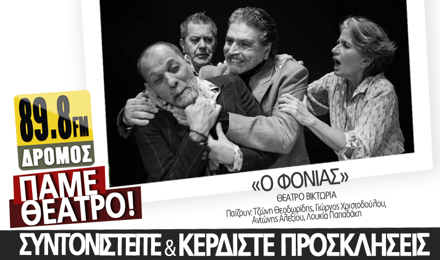 Ο ΔΡΟΜΟΣ 89,8 παρουσιάζει την παράσταση «Ο ΦΟΝΙΑΣ» του Μήτσου Ευθυμιάδη, στο Θέατρο Βικτώρια. Πρωταγωνιστούν ο Τζώνη Θεοδωρίδης, ο Γιώργος Χριστοδούλου, ο Αντώνης Αλεξίου και η Λουκία Παπαδάκη.