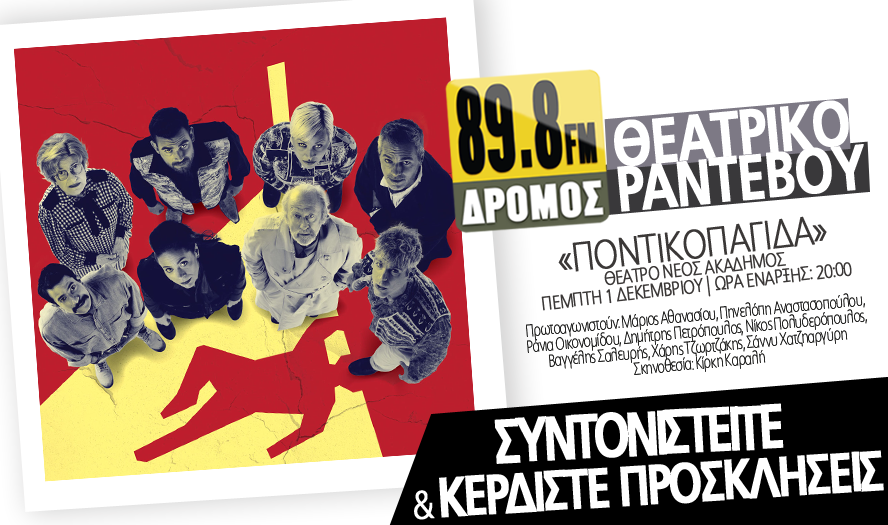 Ο ΔΡΟΜΟΣ 89,8 σας δίνει θεατρικό ραντεβού στην παράσταση «ΠΟΝΤΙΚΟΠΑΓΙΔΑ» της Αγκάθα Κρίστι, στο Θέατρο Νέος Ακάδημος, την Πέμπτη 1 Δεκεμβρίου στις 8 το βράδυ.
