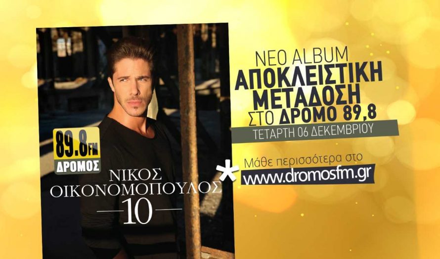Κάθε φορά που ακούτε ένα νέο τραγούδι του Νίκου Οικονομόπουλου, ο ΔΡΟΜΟΣ 89,8 σας δίνει τη ευκαιρία να κερδίσετε το νέο ακυκλοφόρητο album του υπογεγραμμένο από τον ίδιο.