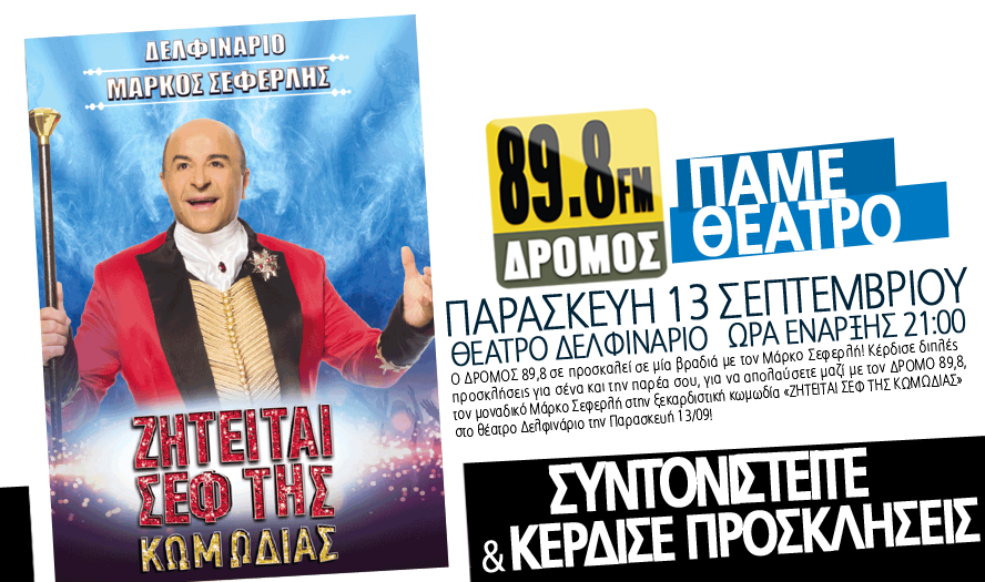 Ο ΔΡΟΜΟΣ 89,8 παρουσιάζει την παρασταση του Μάρκου Σεφερλή, «Ζητείται Σεφ της Κωμωδίας»!