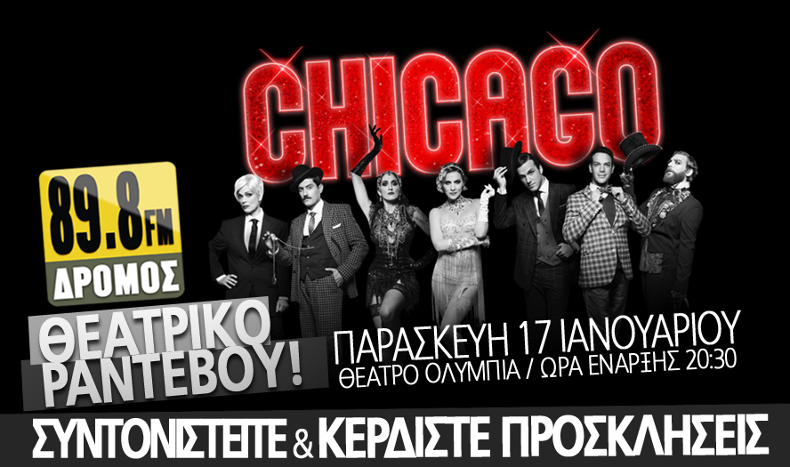 Μείνετε συντονισμένοι στον ΔΡΟΜΟ 89,8 και κερδίστε διπλές προσκλήσεις για να απολαύσετε το musical «CHICAGO» την Παρασκευή 17 Ιανουαρίου, στις 20:30, σε ένα μοναδικό θεατρικό ραντεβού με τον ΔΡΟΜΟ 89,8!